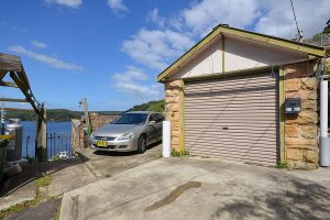 The waterfront offers a brick boat shed and grassed level area with gazebo and potential for a pontoon (STA). At street level there is a sandstone garage and off-street parking.
