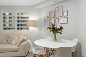 • Open plan living area with air conditioning and framed by double glazed windows with plantation shutters