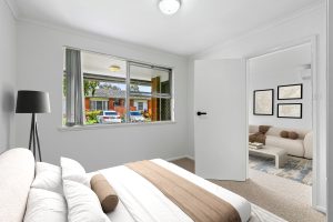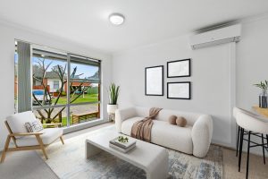 • Living room highlighted by a large window that bathes the space in natural light and fitted with split system air conditioning to ensure all year-round comfort
