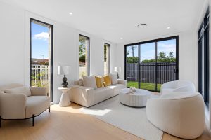 • Expansive living and dining area, framed by striking floor-to-ceiling windows, inviting an abundance of natural light while seamlessly extending to a level grassed yard and a covered alfresco, fostering a refined connection between indoor and outdoor living.