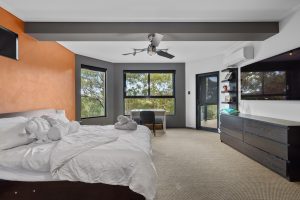 • Secluded fifth bedroom on the lower level providing the perfect guest retreat with its own ensuite, built-in wardrobe, and direct access to the covered terrace nestled among natural rock formations and greenery.