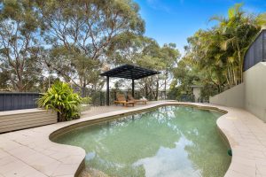 The ultimate embodiment of an entertainer’s paradise, this distinguished residence is of rare calibre, defined by architectural artistry and a harmonious connection to its natural surroundings. Every element has been meticulously curated to frame the landscape and establish an unbroken dialogue between the home’s refined interiors and breathtaking outdoor domains. The interior unfolds with a graceful sense of continuity, revealing five bedrooms, three bathrooms, and expansive living areas anchored by an open plan designer kitchen. An elevated alfresco terrace seamlessly extends the indoor entertaining spaces, suspended above the valley with a captivating panorama across the suburban skyline to the Royal National Park and Port Hacking. Below, a resort inspired poolside sanctuary cascades through lush greenery, offering a haven of tranquility and seclusion.