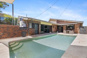 • Resort-style yard unfolding over two landscaped levels, featuring manicured lawns, a travertine-framed inground saltwater pool, alfresco entertaining area with retractable shade, concealed storage, and a new Colorbond fence for added privacy.