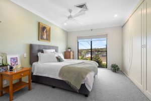 • Master retreat commanding tranquil water views and offering ducted air conditioning, sheer and blockout blinds, a walk-in robe, built-in wardrobe, and an ensuite appointed with a spacious shower and vanity with under-bench storage.