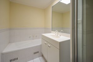 • Bathroom featuring a large vanity with under bench storage, shower and a separate bathtub, complemented by a separate internal laundry