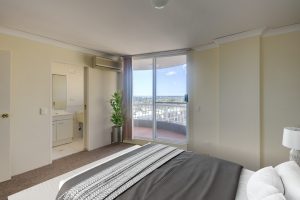 • Two balconies offering separate private and entertaining zones, with the master bedroom balcony offering views across the city skyline