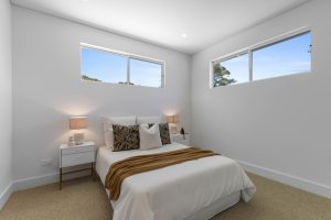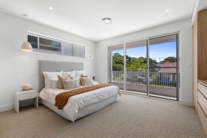 • The main suite offers a private retreat, complete with built-in wardrobes and a dressing table, a stylish ensuite with full-height tiling, dual shower, floating vanity and LED mirror, plus balcony