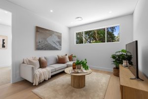 • A family lounge sits between the upstairs bedrooms, featuring timber floors, high ceilings, and natural light, creating a bright and functional secondary living space