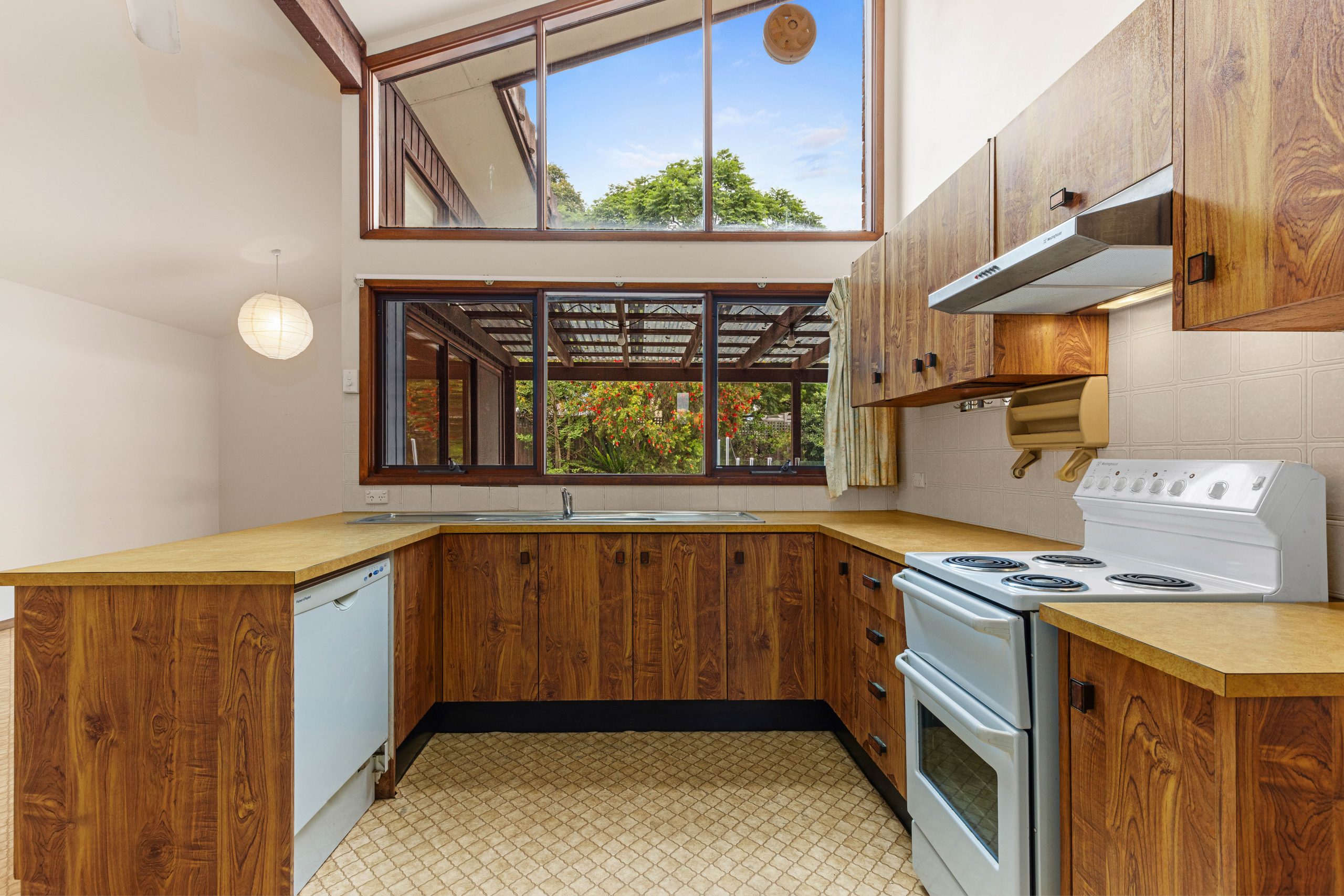 • Functional original kitchen offering extensive bench space, timber cabinetry and a Westinghouse freestanding cooker, overlooking the rear yard and presenting an exceptional opportunity for a contemporary redesign