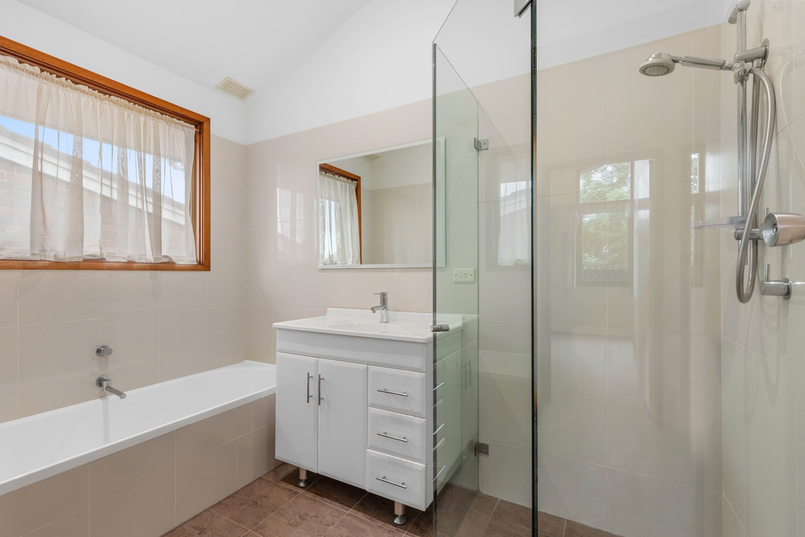 • Renovated main bathroom centrally positioned to the upstairs bedrooms, beautifully appointed with a bathtub, frameless shower and sleek vanity with under bench storage