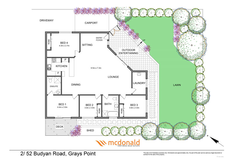 Perched on the high side of one of Grays Point’s most serene streets, this charming four-bedroom villa style home presents an enviable opportunity to downsizers and first-time buyers alike seeking a low-maintenance lifestyle. The single-level design features a spacious open-plan living and dining area with air conditioning that seamlessly connects to the kitchen and extends out to a covered entertaining alfresco space. This inviting alfresco area overlooks a level grassed yard surrounded by beautifully landscaped gardens, creating an ideal setting for both relaxation and entertaining.