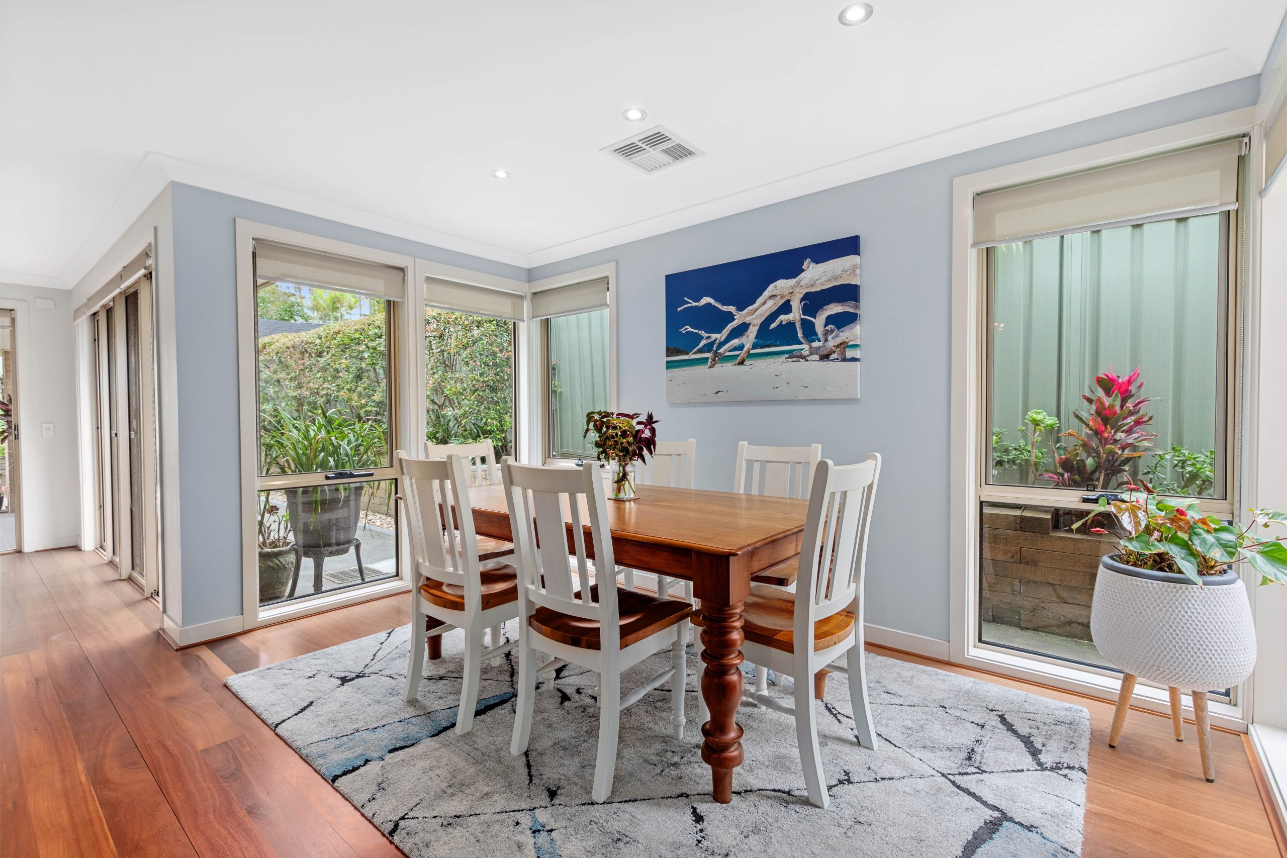 • Open plan living and dining domain adorned with timber flooring and framed by floor-to-ceiling corner windows that captures the northern sun while connecting to the outdoor entertaining areas
