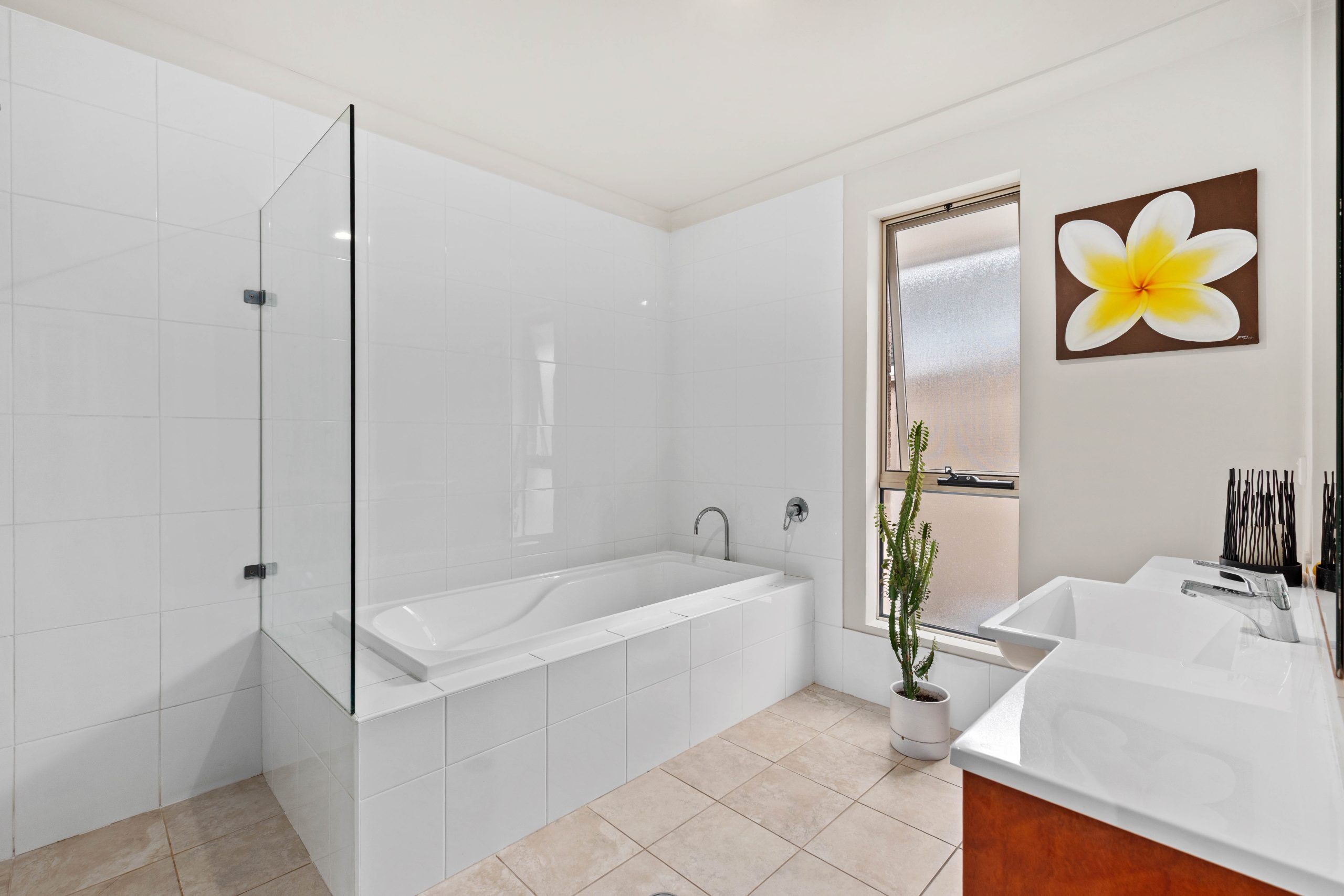 • Main bathroom with a frameless shower, bathtub and WC + separate internal laundry with extensive storage, generous bench space and external access