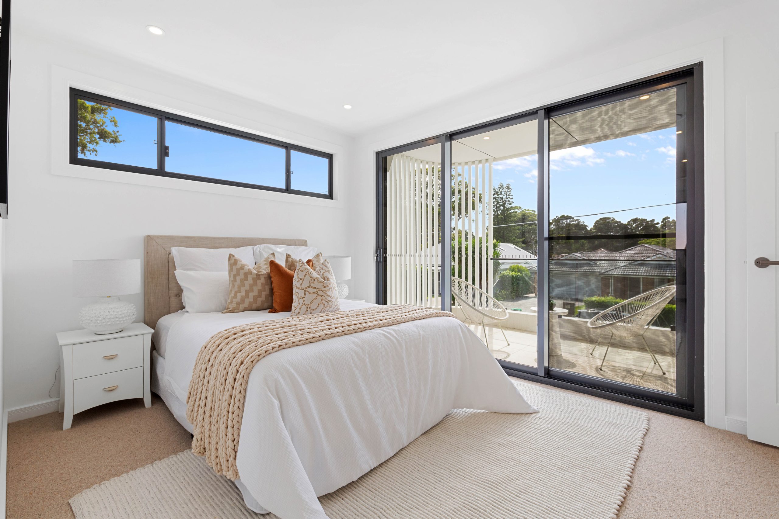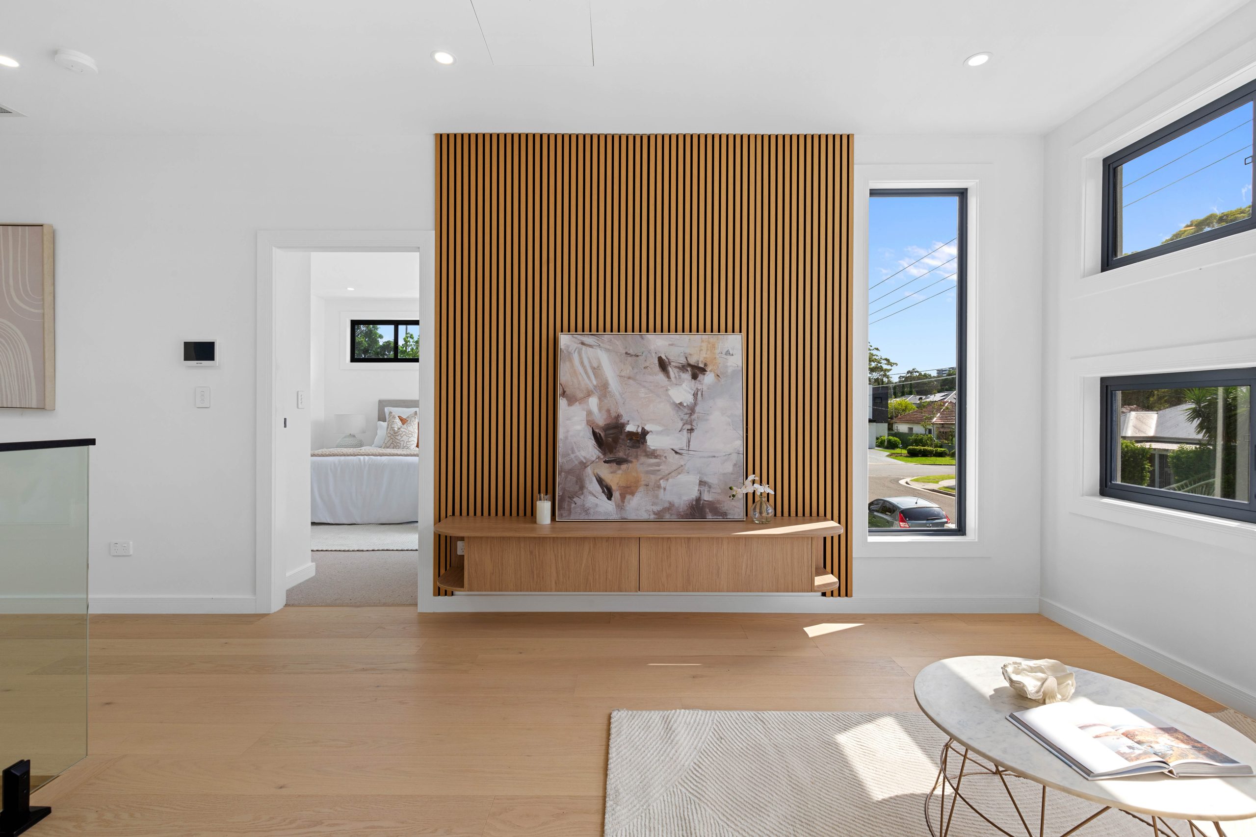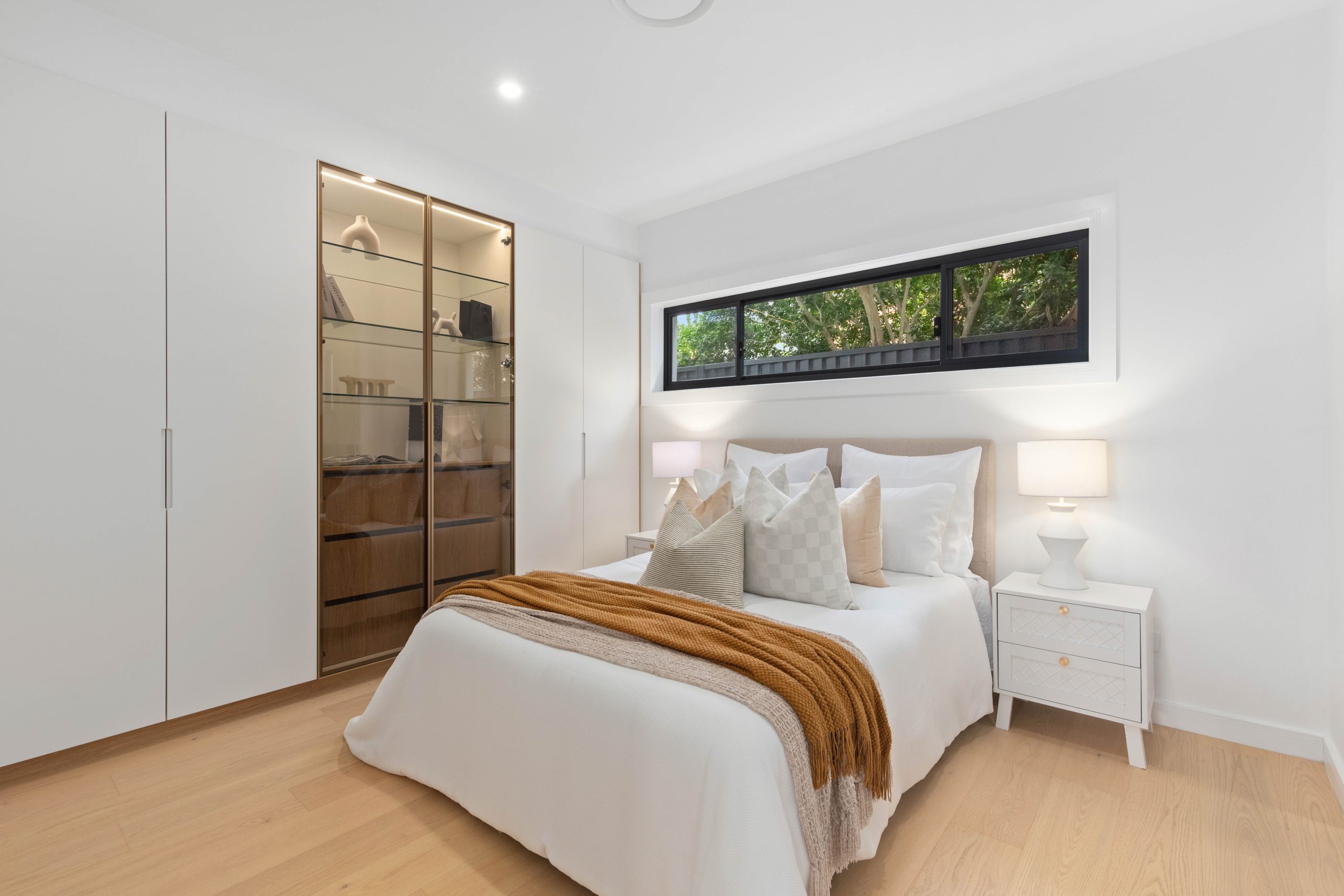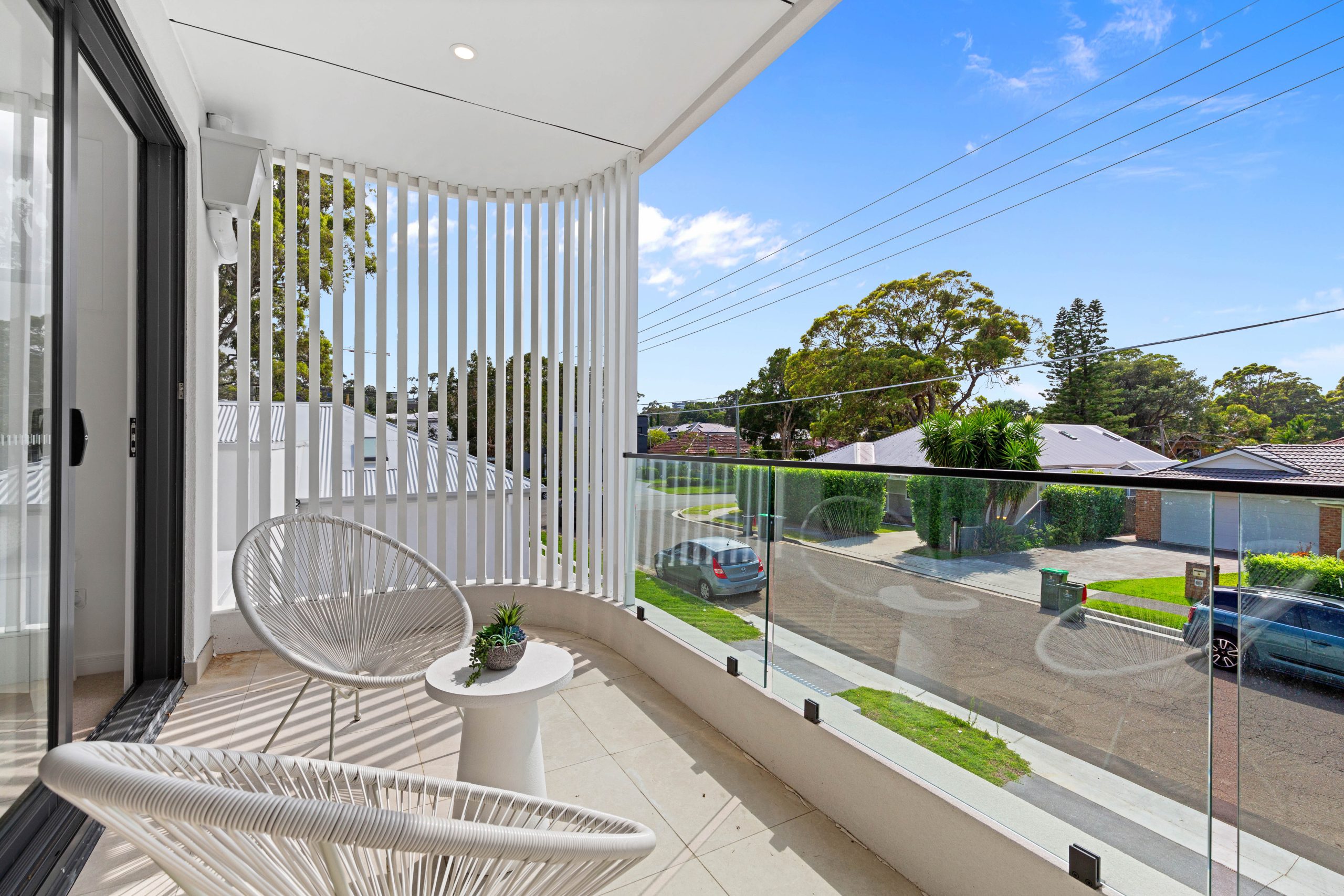 • Master suite, a luxurious retreat, boasting a bespoke walk-in robe with a built-in vanity desk, a lavish ensuite featuring a freestanding bath, and a private balcony capturing elevated views over the serene streetscape.