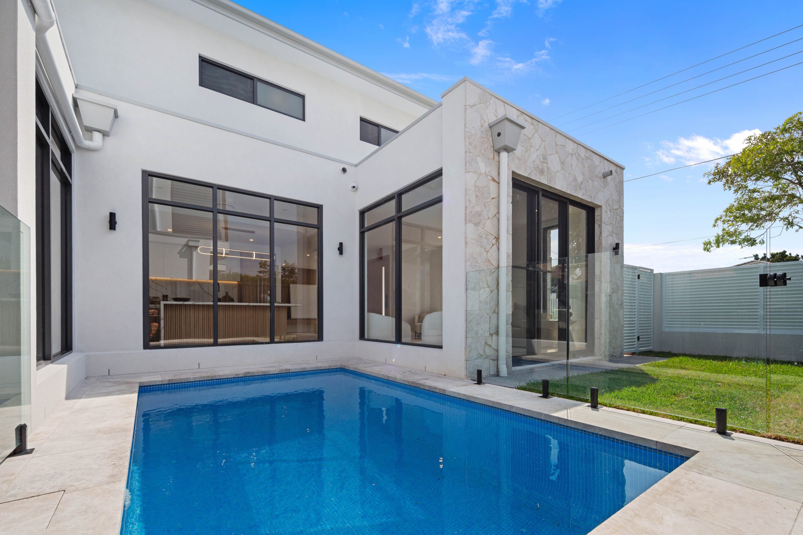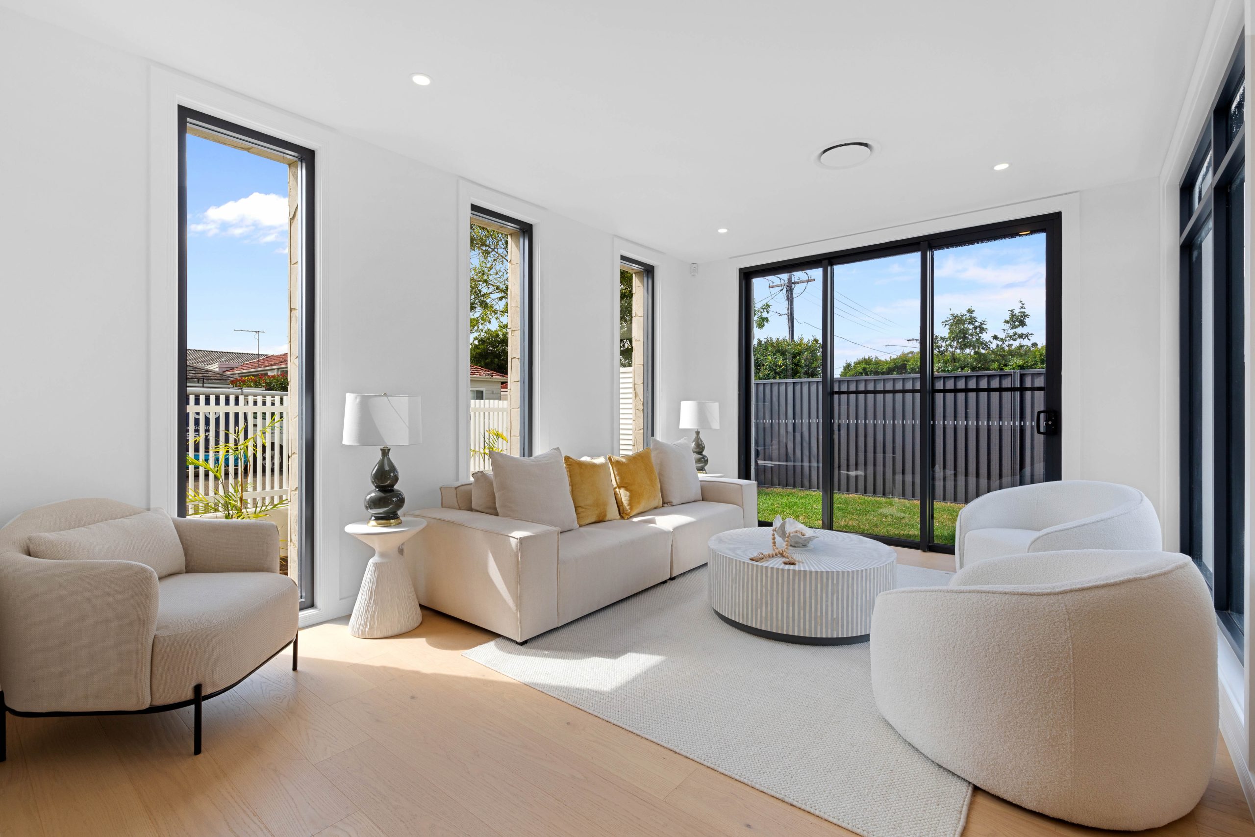A vision of modern sophistication, this brand-new residence has been masterfully designed to offer an unparalleled living experience, filled with refined elegance and effortless comfort. A crisp white palette, pale timber accents, and refined batten detailing establish a seamless cohesion throughout, while expansive floor-to-ceiling windows flood the interiors with natural light, enhancing the sense of space and serenity. Spanning two meticulously crafted levels, the home seamlessly blends functionality with sophistication, featuring multiple living areas, a designer kitchen that serves as the heart of the home, and five elegantly appointed bedrooms each with custom-built robes, including two with private ensuites. Designed for effortless entertaining, the outdoor spaces extend the living areas to a covered alfresco, sunlit swimming pool, and pristine level lawn, creating a private sanctuary for year-round enjoyment.