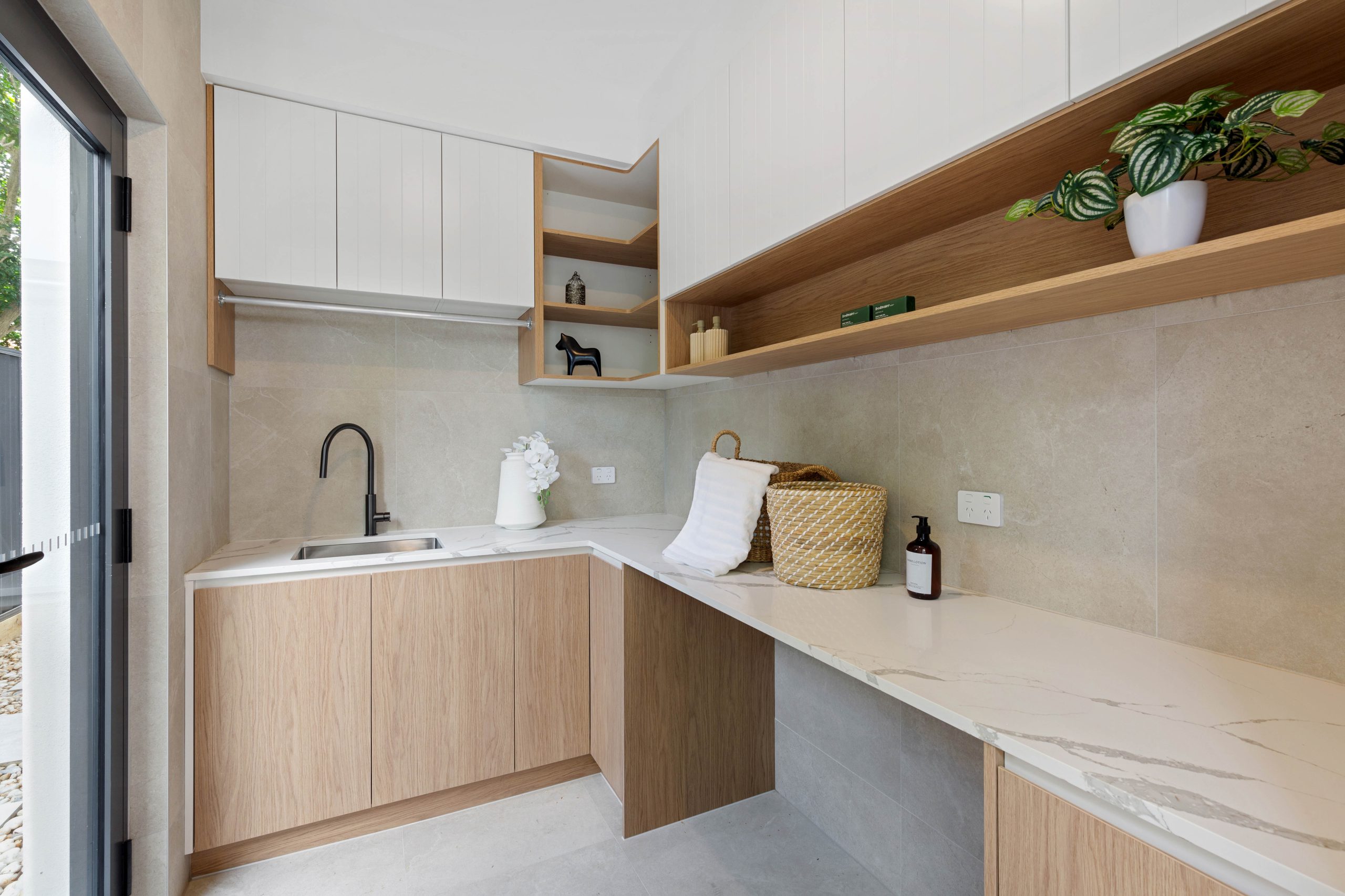 • Internal laundry, seamlessly integrating functionality with style, featuring extensive cabinetry, dedicated hanging space, and direct access to an external clothesline for everyday convenience.