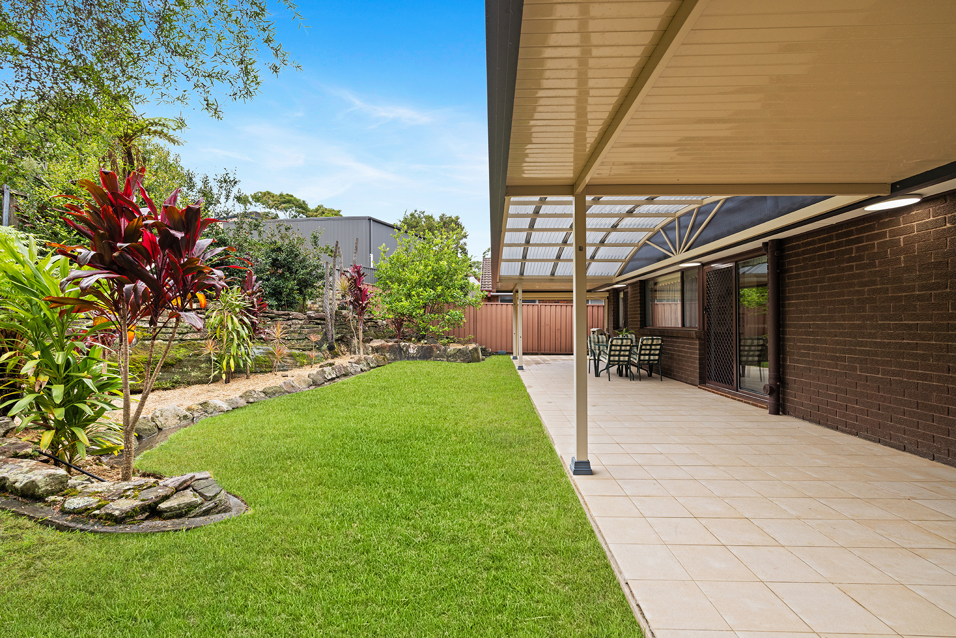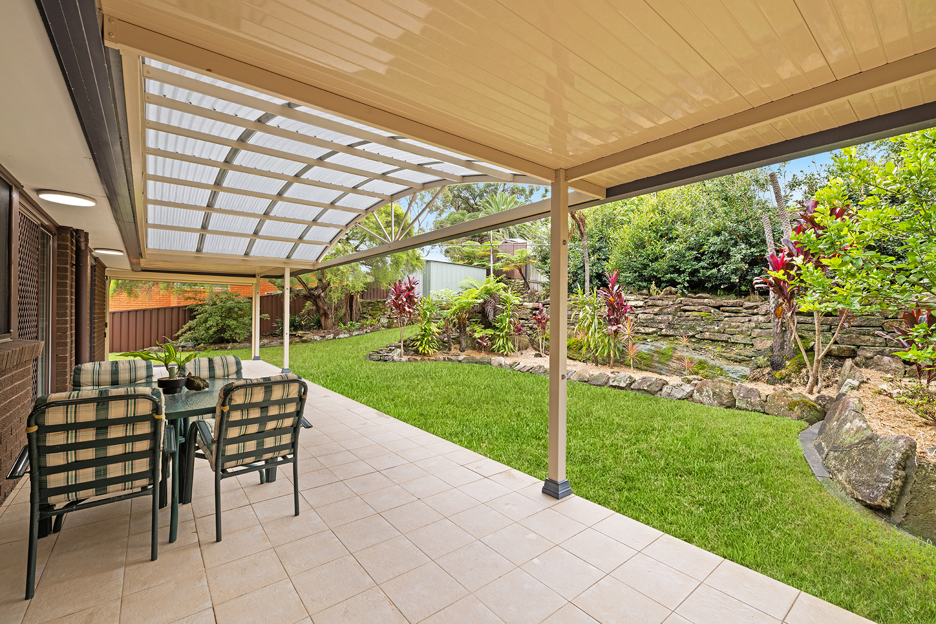 • Covered entertaining alfresco overlooking the grassed yard and manicured gardens that extend throughout the outdoor setting, complemented by a garden shed and convenient side access.