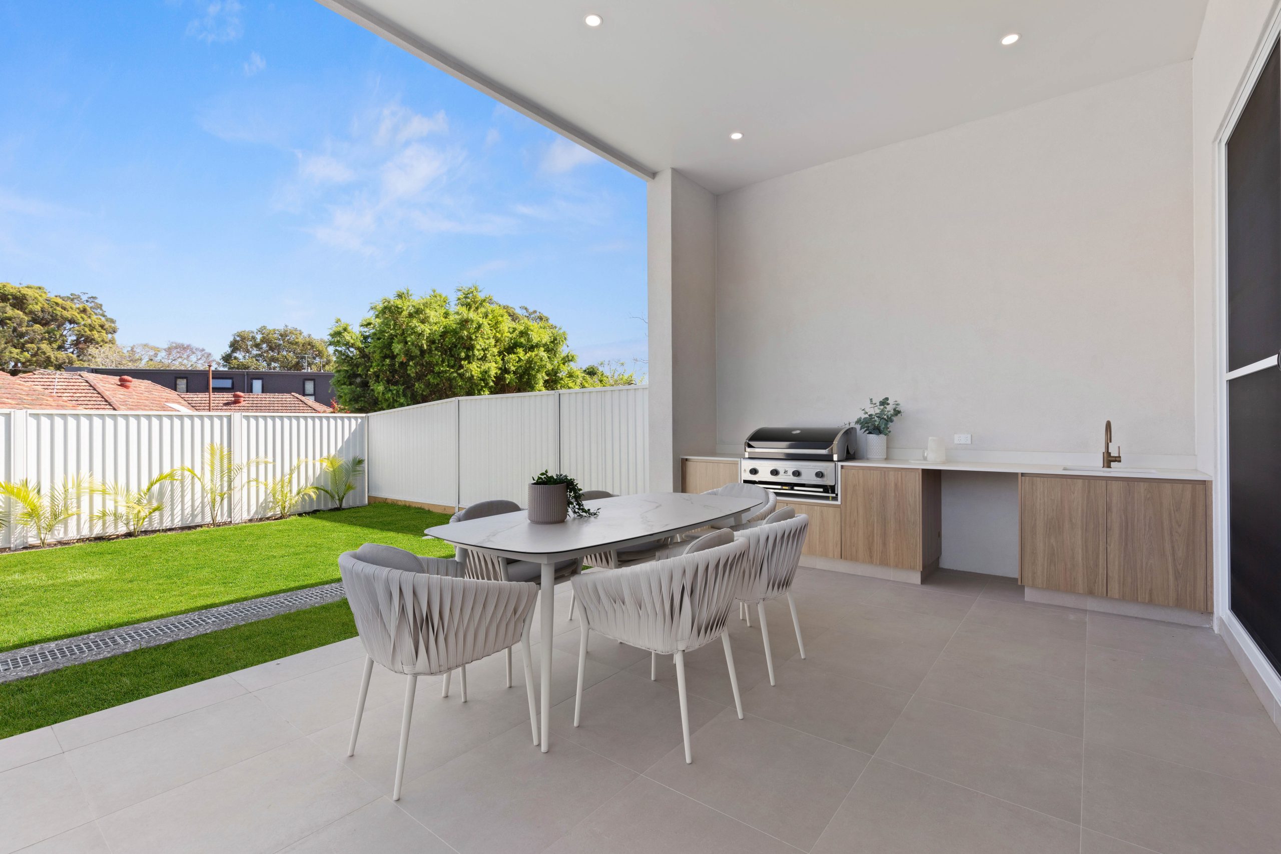 • Covered terrace seamlessly bridging indoor and outdoor living, featuring a fully equipped outdoor kitchen with a built-in BBQ and gracefully extending to the level lawn areas framed by meticulously landscaped gardens, creating the perfect setting for sophisticated grand-scale entertaining.