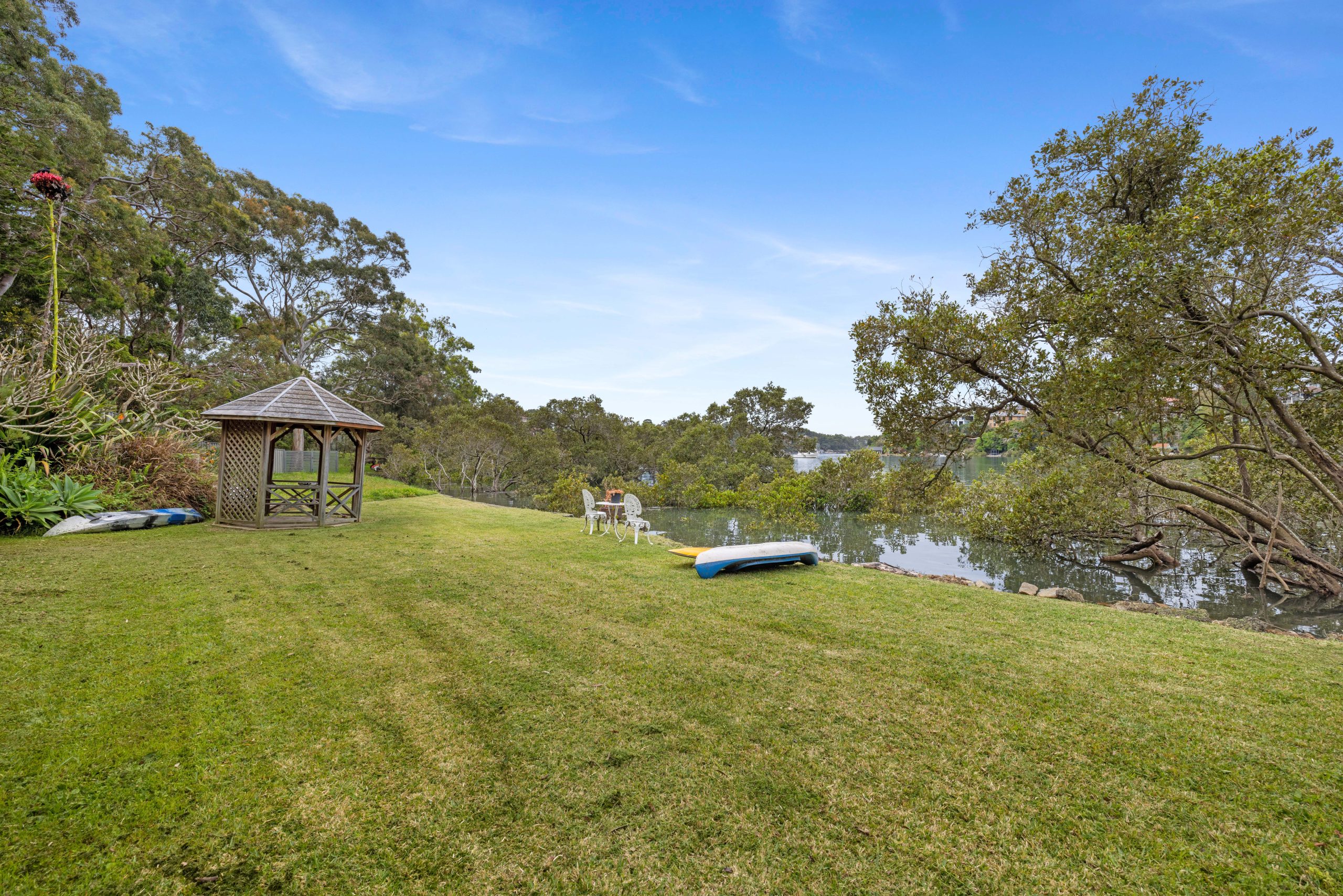 Set against the tranquil backdrop of Coronation Bay and the Georges River, this north east facing tidal waterfront residence embodies the essence of relaxed bayside living, where gentle tides and leafy surrounds establish an enduring sense of calm. This is the first time in 50 years that ‘Bemersyde’ has been offered for sale and is located down a private road in the highly sought after enclave of Green Point embracing waterfront living. Spanning two levels, the home presents an exceptional opportunity to create a contemporary sanctuary, with the existing layout featuring three generously proportioned bedrooms, a spacious kitchen and multiple living areas designed to capture the picturesque water vistas. At the rear, the grassed yard meanders to meet the water’s edge which is complete with a gazebo and garden shed, forming an enviable lifestyle setting ideal for effortless outdoor enjoyment.