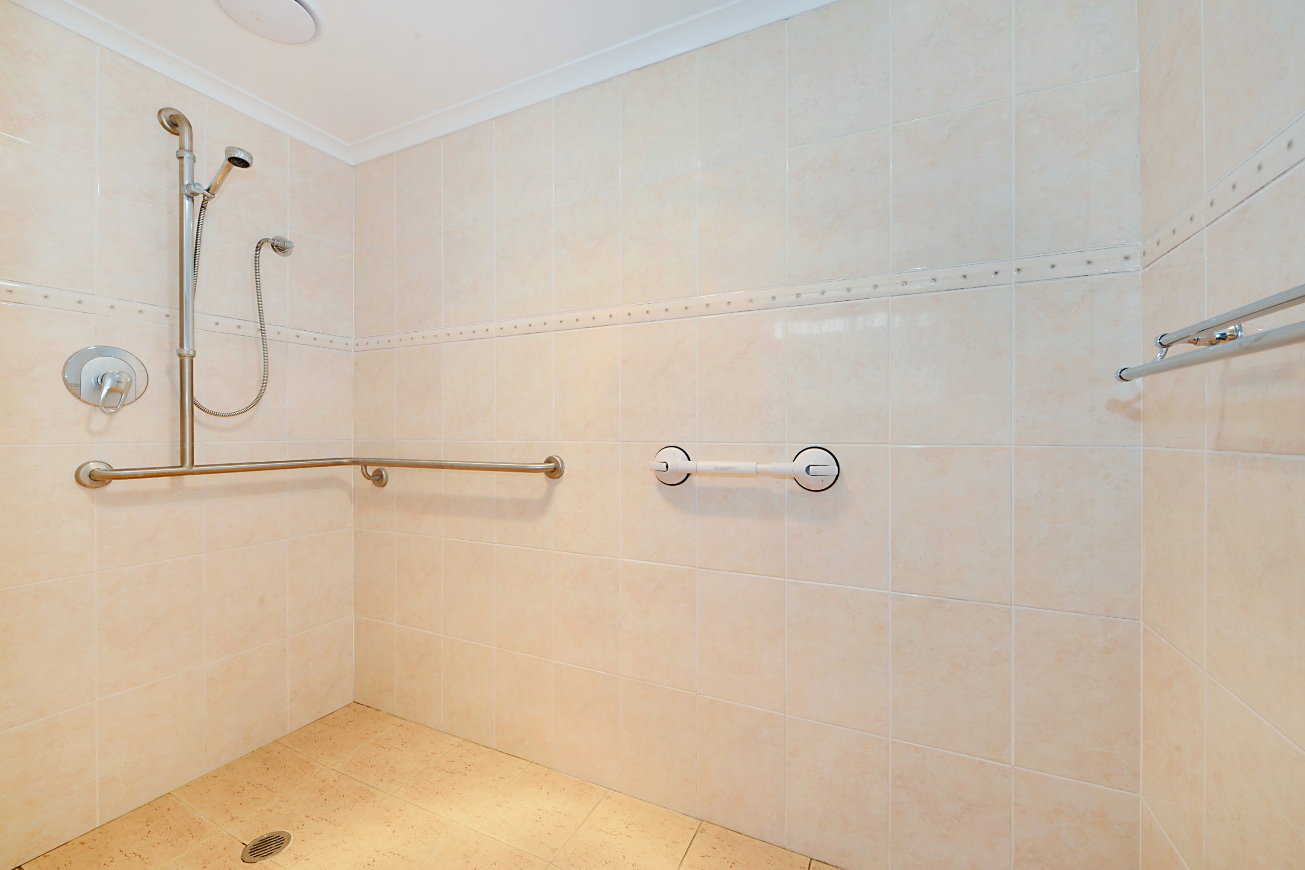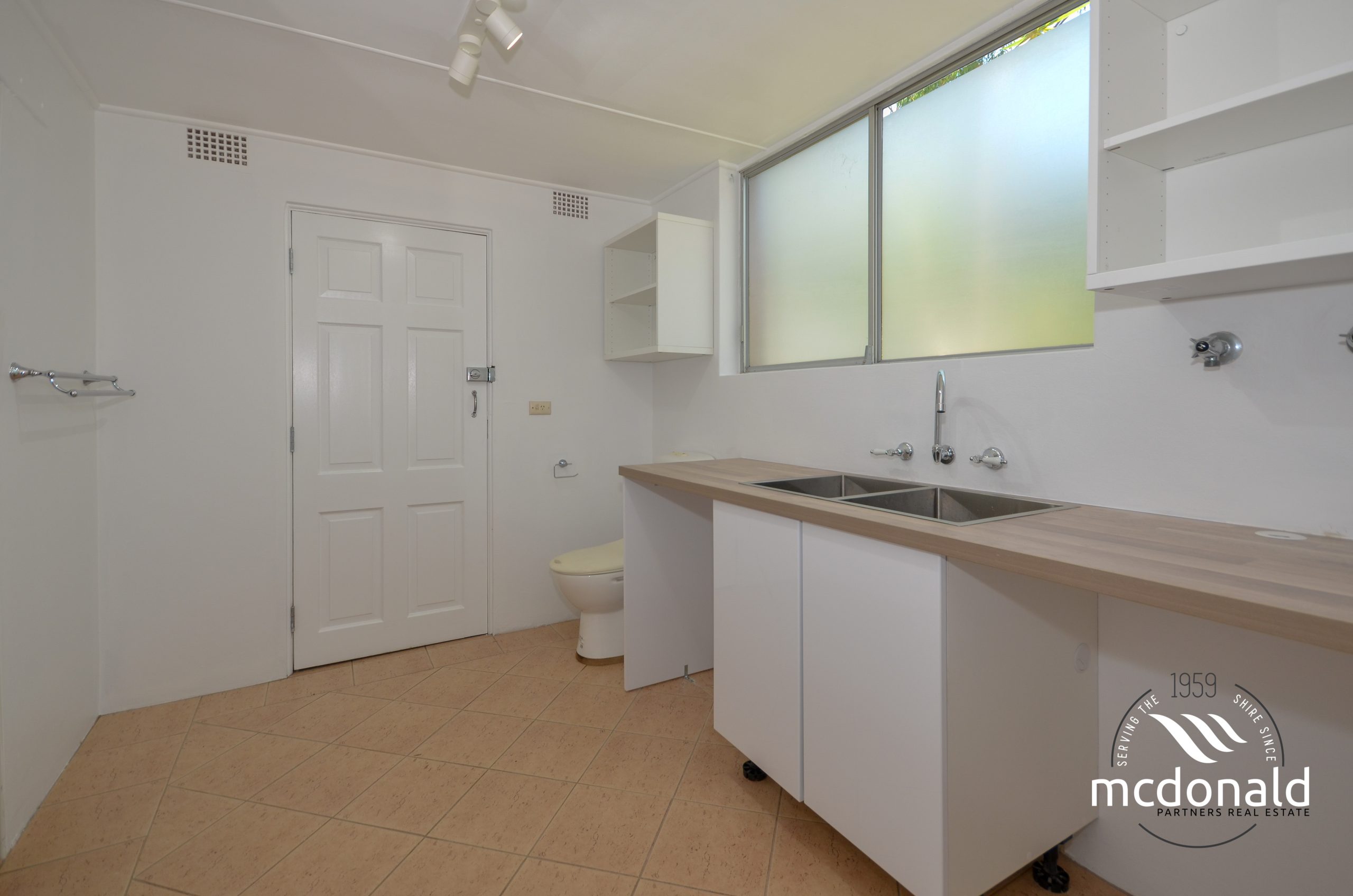 Large internal laundry with ample bench and cupboard space plus toilet and shower