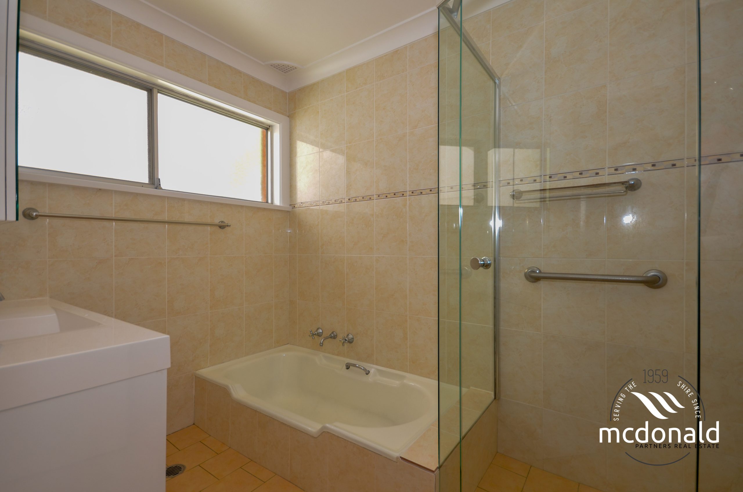 Neat and tidy main bathroom with separate bath and shower